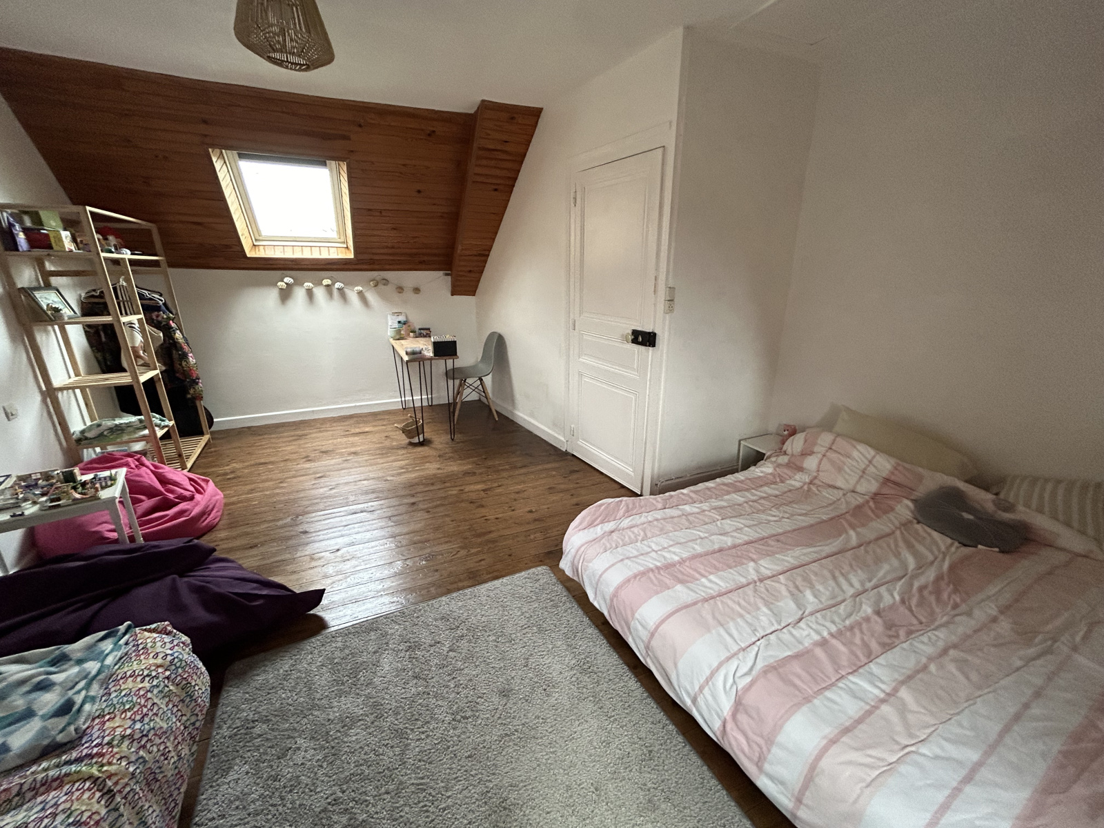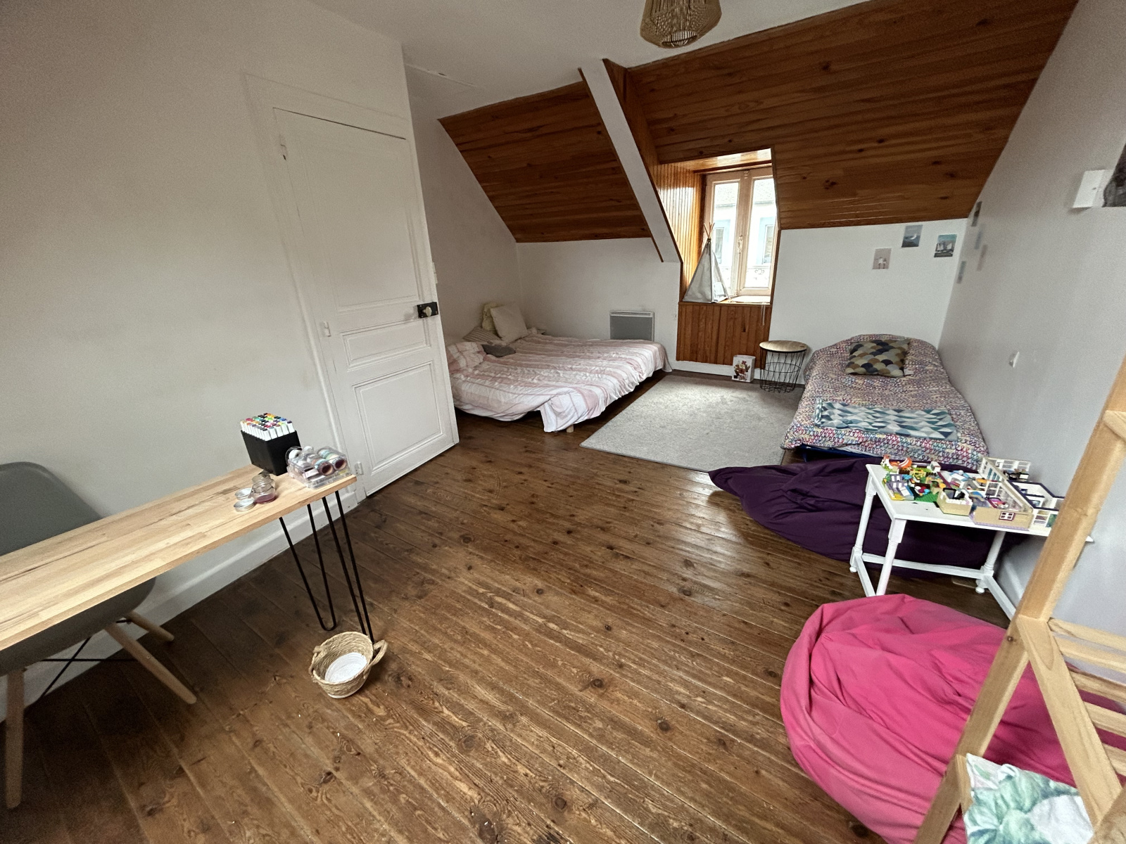 Quant à l'étage, il dispose d'un palier desservant deux grandes chambres dont une avec cabinet de toilette.