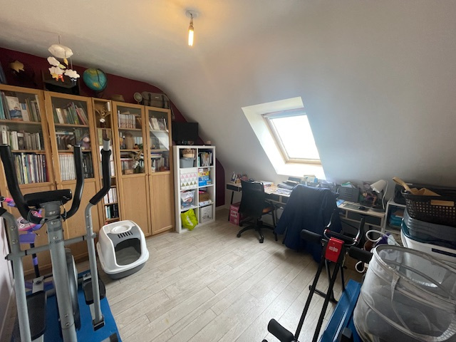 A l'étage, vous trouverez un palier qui dessert trois chambres, un bureau et une salle de bain.