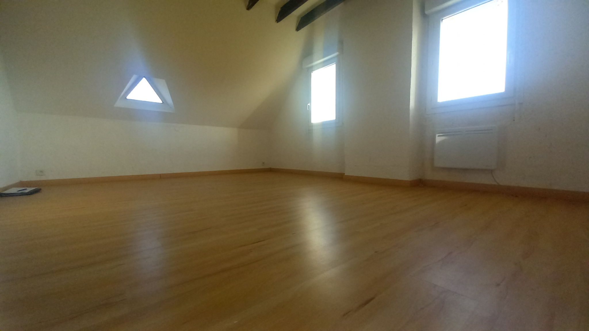 A l'étage: vous disposez d'une chambre d'environ 15m2 sous mansarde et sur parquet flottant, ainsi qu' une grande pièce à aménager selon vos besoins de 25m2 (chambre, dressing, wc...).